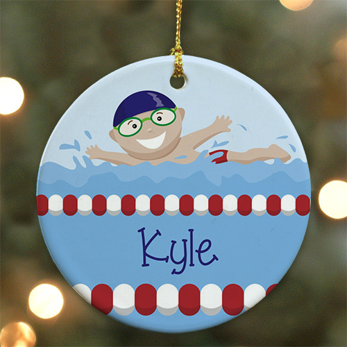 Personalized Swimming Ornament | Boy Swimmer Ornament